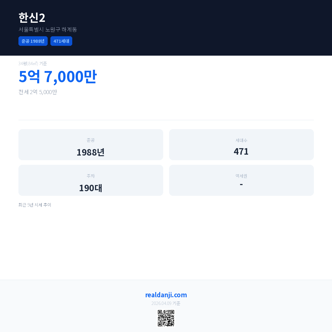 한신2 최근 거래가는 5억 7,000만입니다. (2026-03)