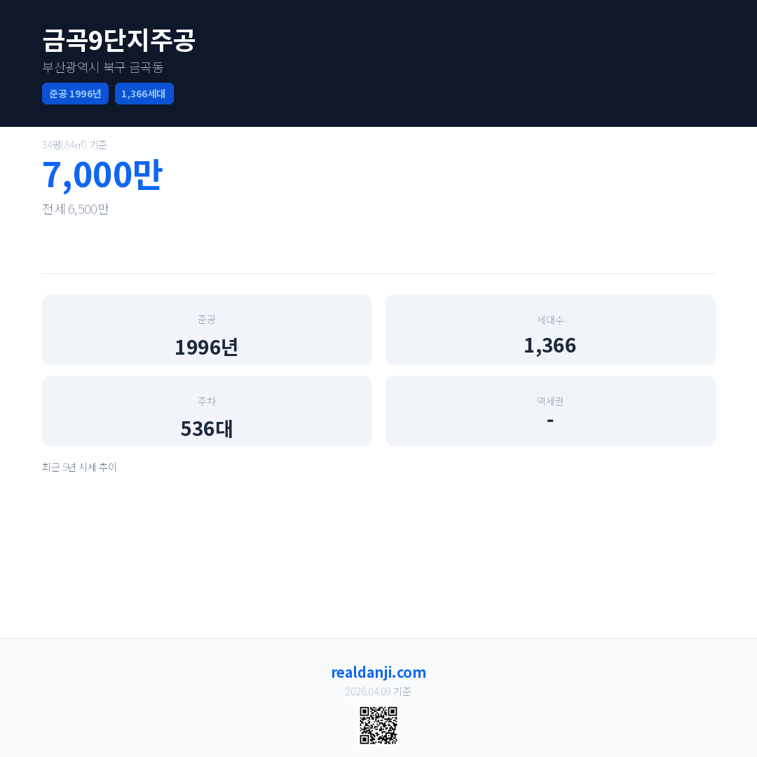 금곡9단지주공 최근 거래가는 7,000만입니다. (2026-03)