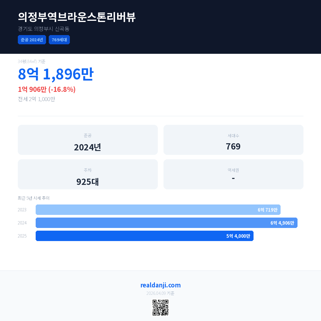 의정부역브라운스톤리버뷰은(는) 2024년에 준공되었으며, 현재 2년차입니다. 총 769세대 규모입니다.