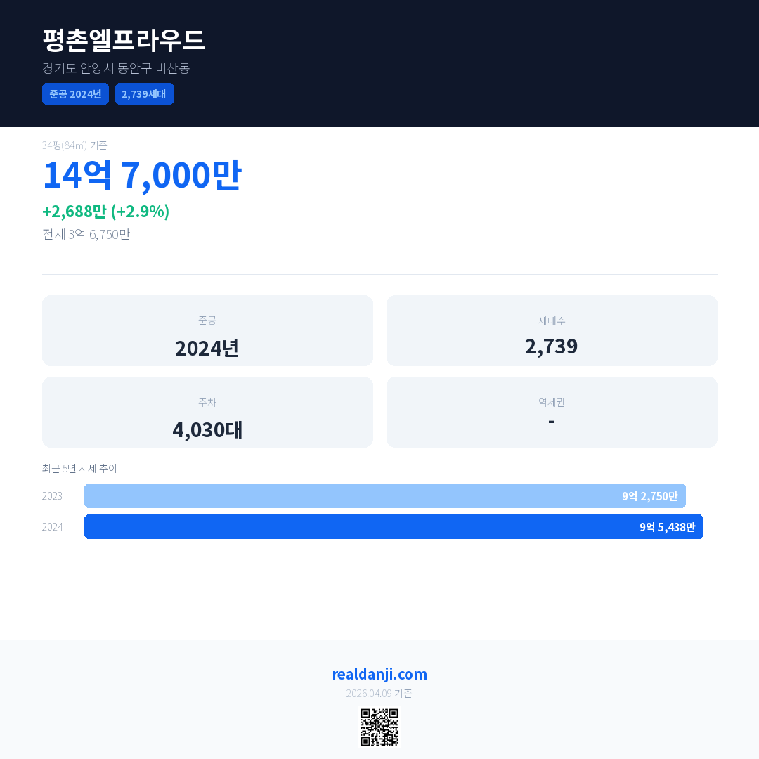 평촌엘프라우드 최근 거래가는 14억 7,000만입니다. (2026-01)