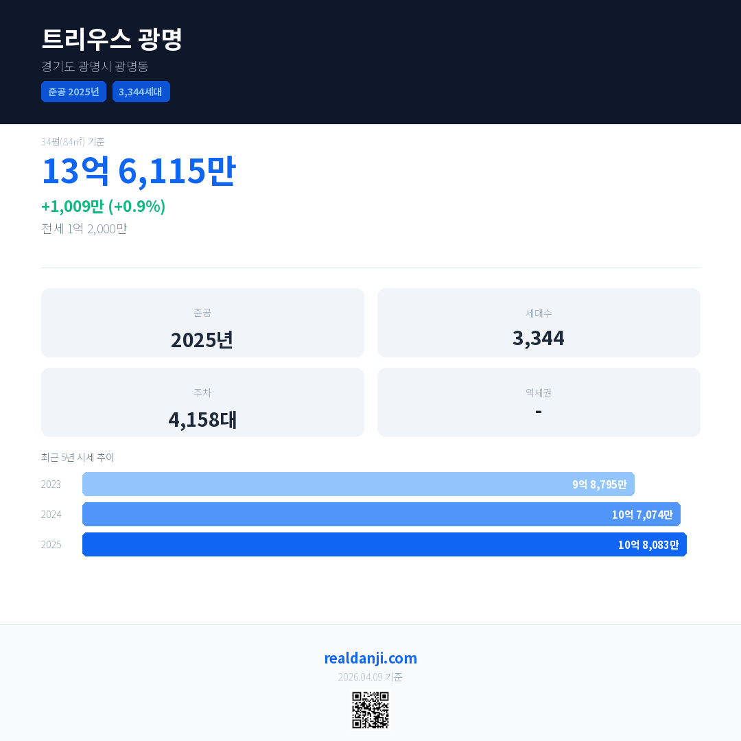 트리우스 광명 최근 거래가는 13억 6,115만입니다. (2026-03)
