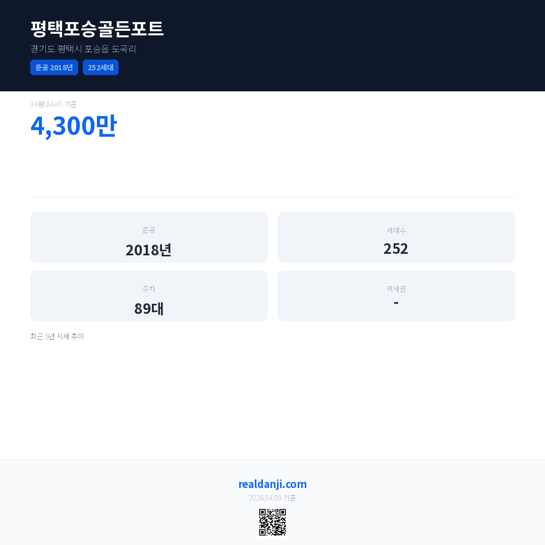 평택포승골든포트 최근 거래가는 4,300만입니다. (2026-03)