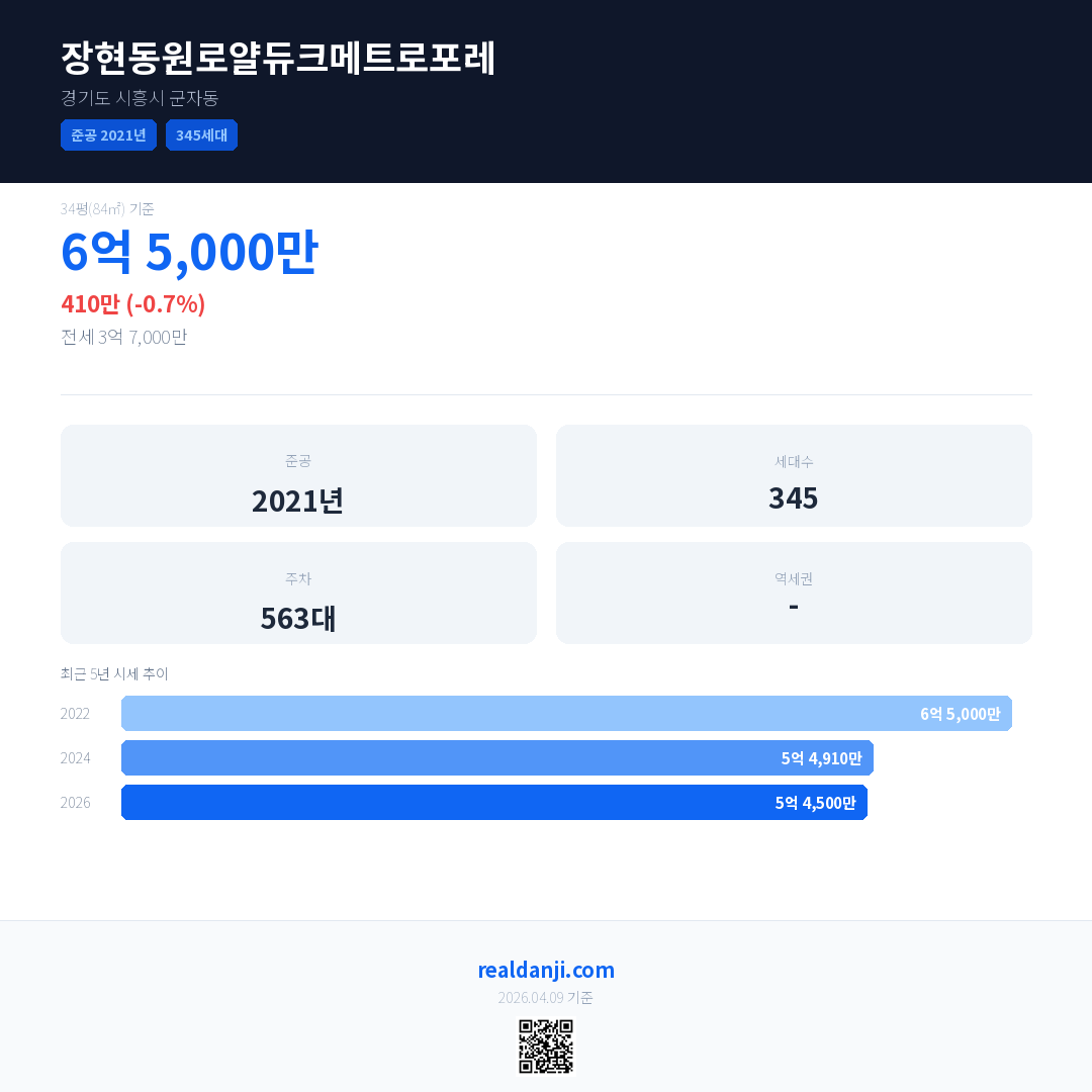 장현동원로얄듀크메트로포레 최근 거래가는 5억 4,500만입니다. (2026-03)