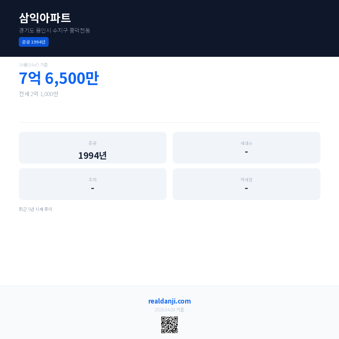 삼익아파트 최근 거래가는 6억 5,200만입니다. (2026-04)
