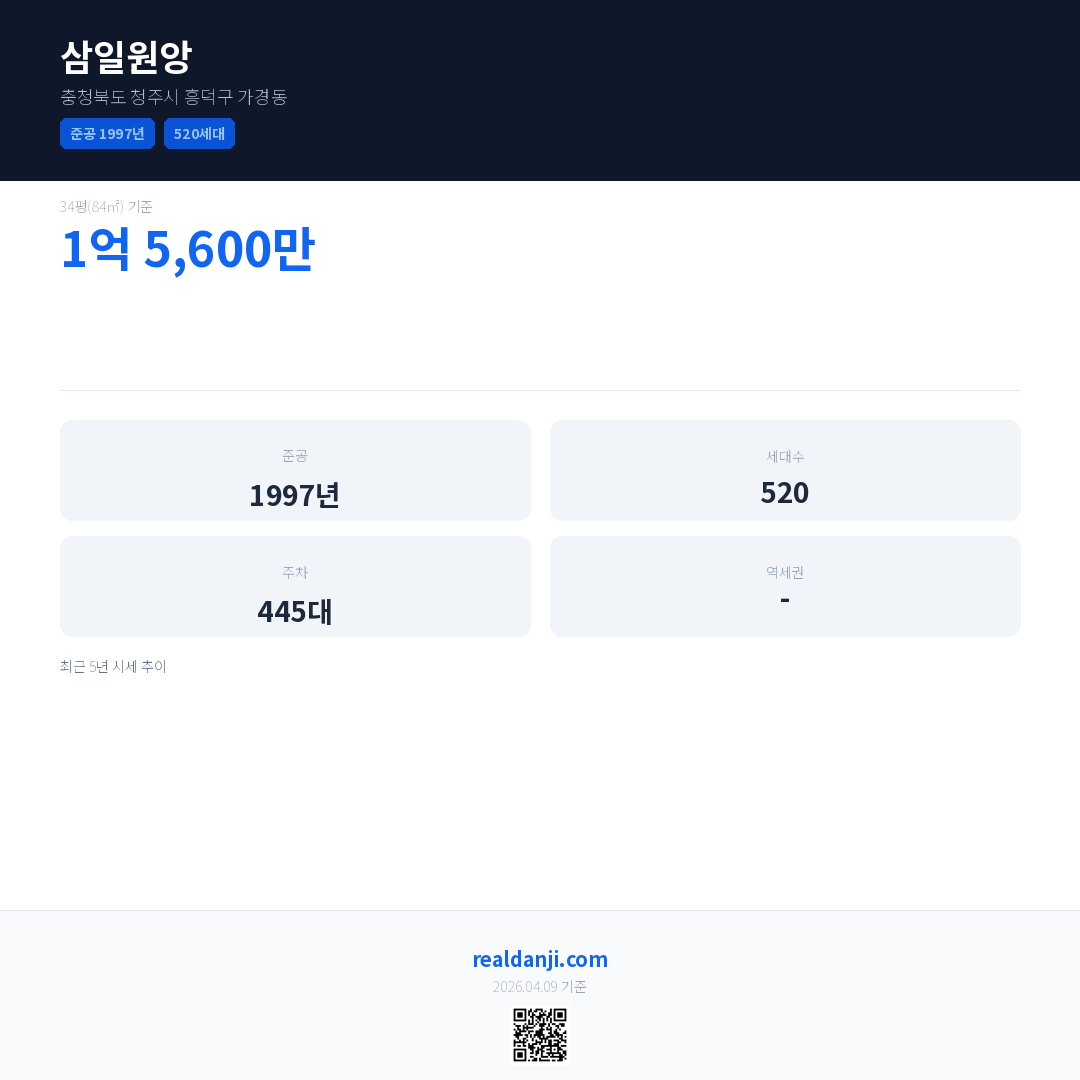 삼일원앙 최근 거래가는 1억 5,600만입니다. (2026-03)