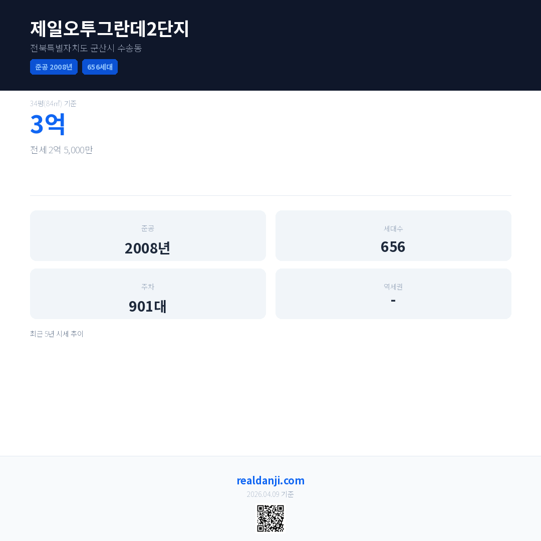 제일오투그란데2단지 최근 거래가는 3억입니다. (2026-03)