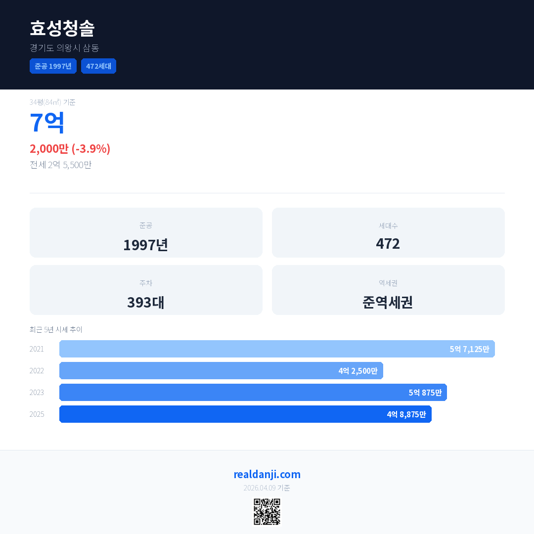 효성청솔 최근 거래가는 7억입니다. (2026-02)