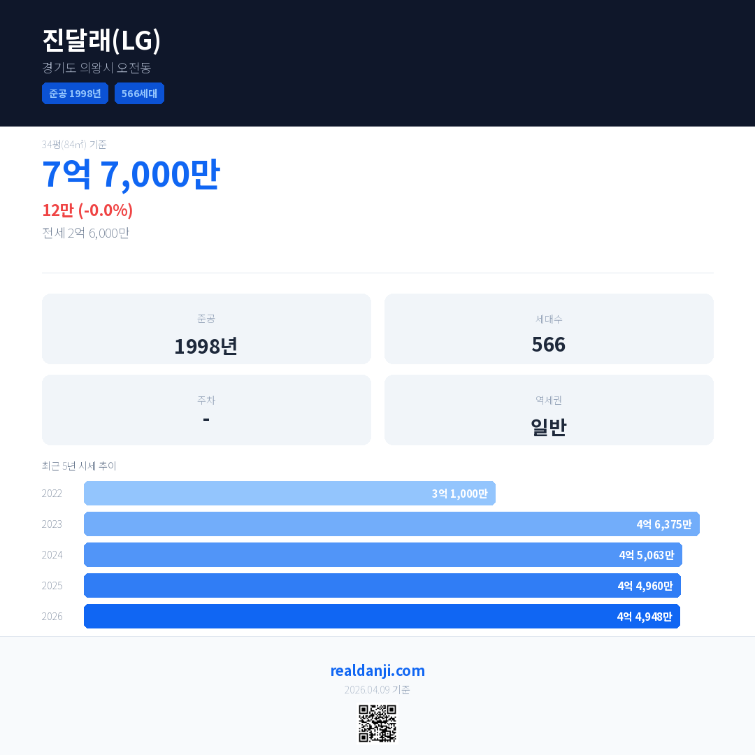 진달래(LG) 최근 거래가는 4억 1,844만입니다. (2026-04)