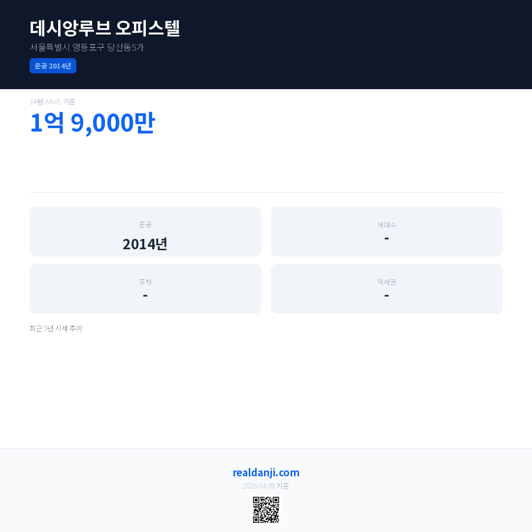 데시앙루브 오피스텔 최근 거래가는 1억 9,000만입니다. (2026-03)