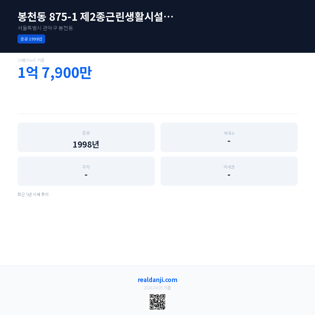봉천동 875-1 제2종근린생활시설 (이종복)은(는) 1998년에 준공되었으며, 현재 28년차입니다.