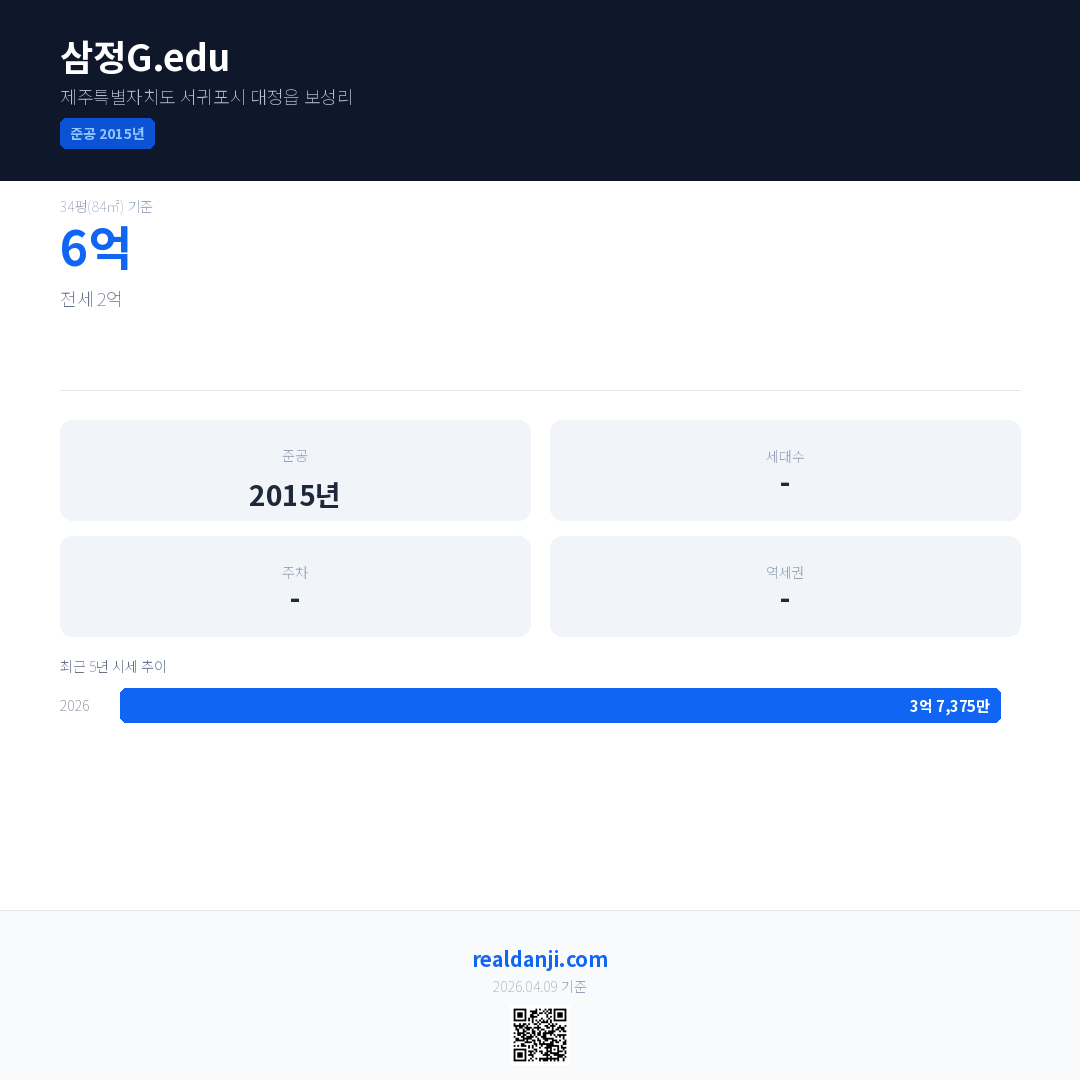 삼정G.edu 최근 거래가는 3억 4,000만입니다. (2026-03)