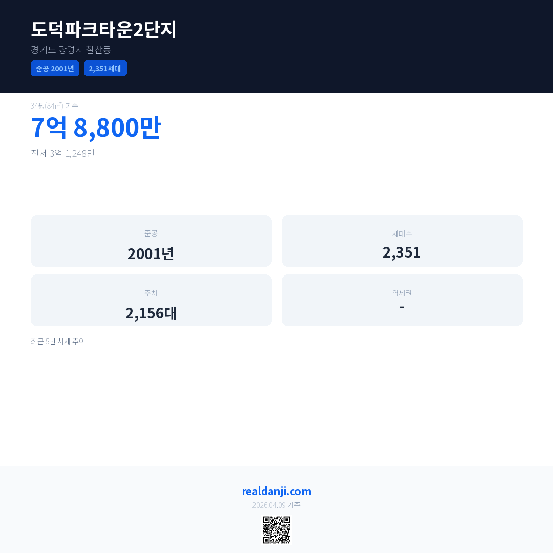 도덕파크타운2단지 최근 거래가는 7억 8,800만입니다. (2026-03)