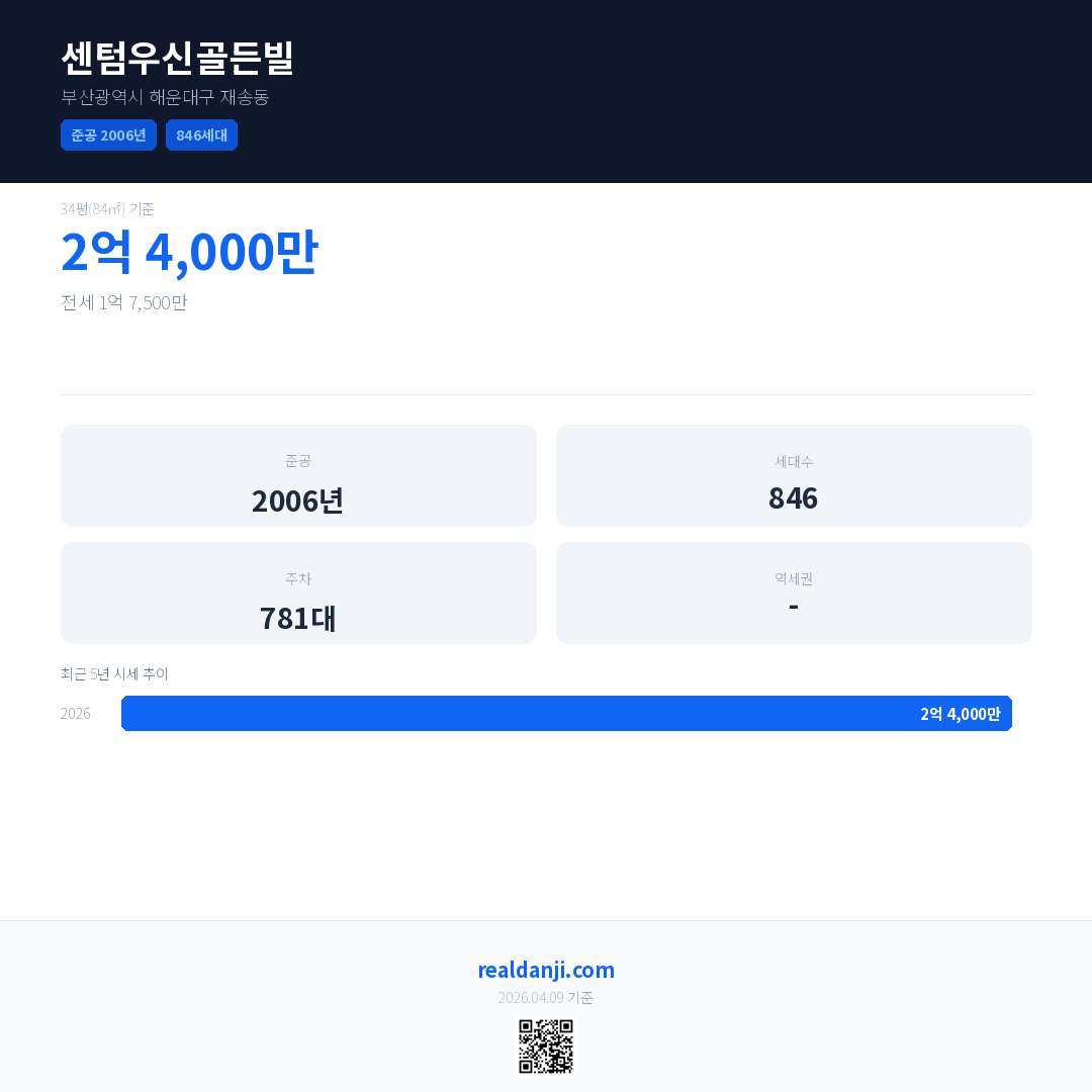 센텀우신골든빌 최근 거래가는 2억 4,000만입니다. (2026-04)