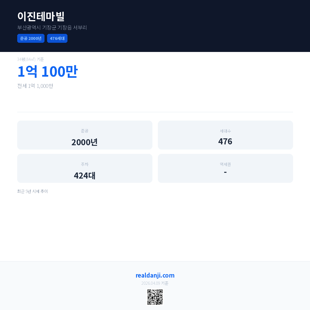 이진테마빌은(는) 2000년에 준공되었으며, 현재 26년차입니다. 총 476세대 규모입니다.