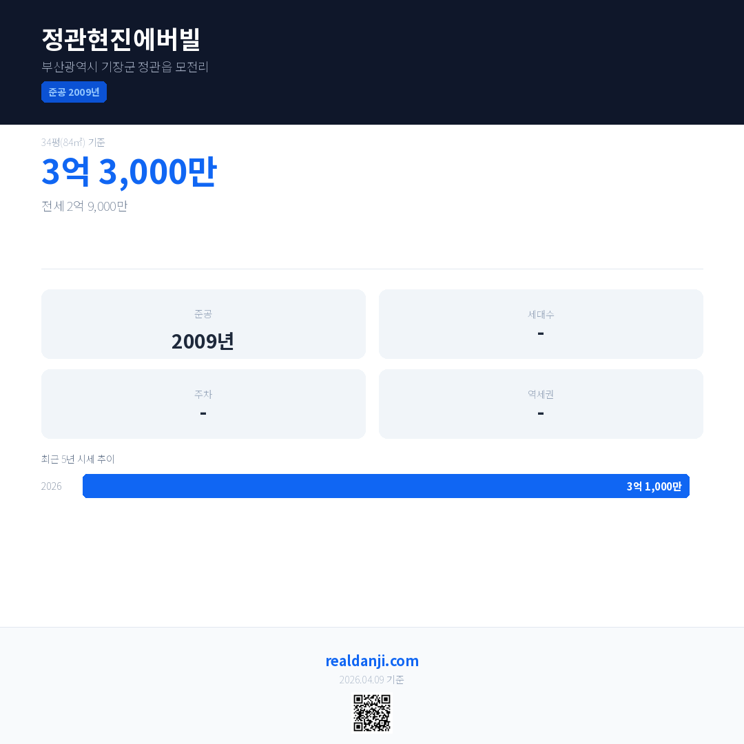 정관현진에버빌 최근 거래가는 3억 3,000만입니다. (2026-03)