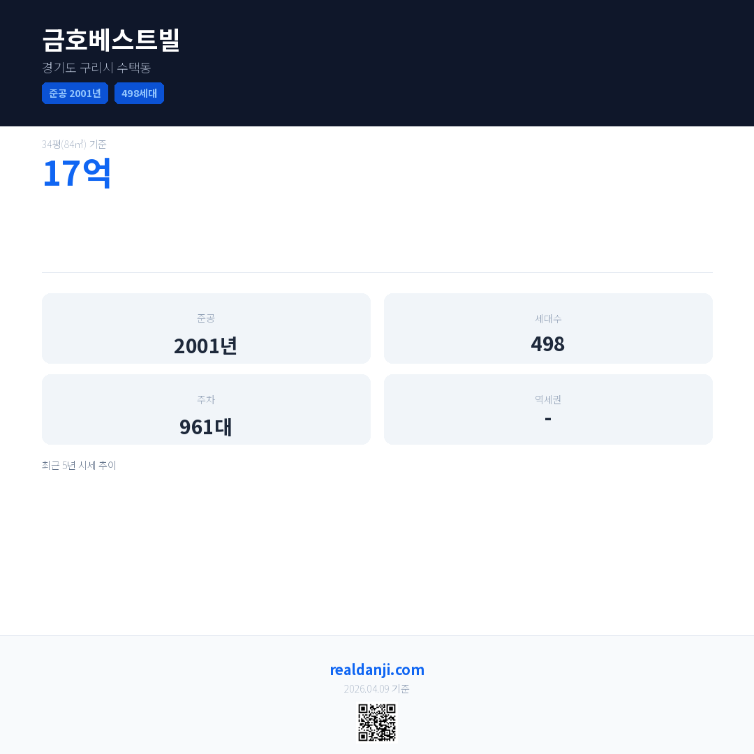 금호베스트빌 최근 거래가는 17억입니다. (2026-03)