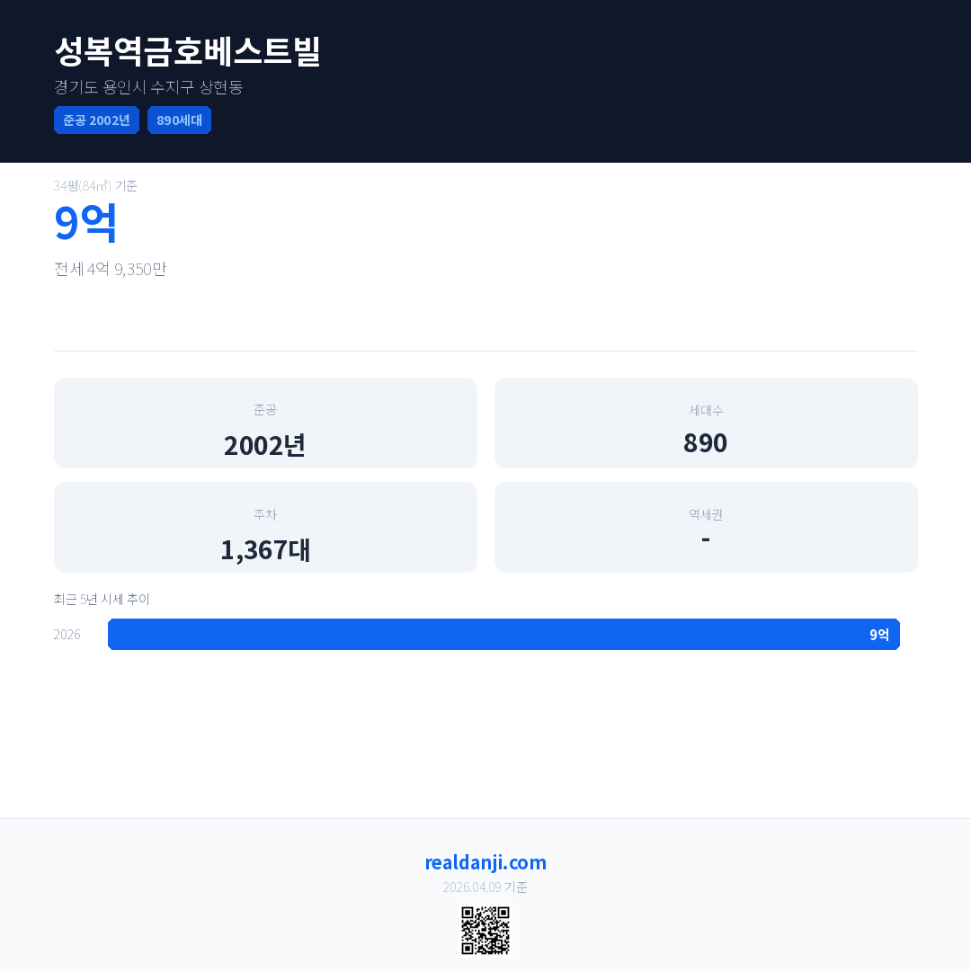 성복역금호베스트빌 최근 거래가는 9억입니다. (2026-03)