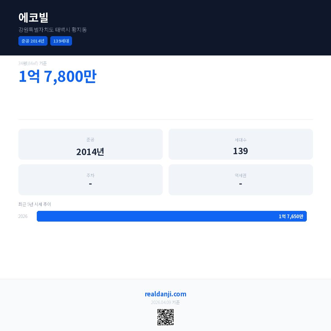 에코빌 최근 거래가는 1억 7,800만입니다. (2026-03)