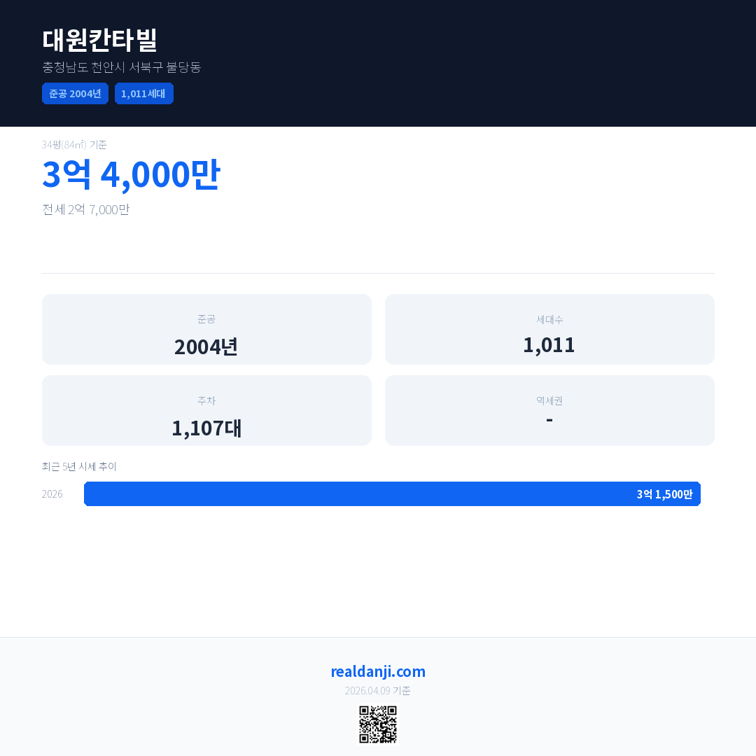 대원칸타빌 최근 거래가는 3억 4,000만입니다. (2026-03)