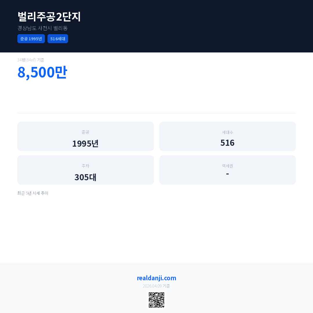 벌리주공2단지 최근 거래가는 8,500만입니다. (2026-03)