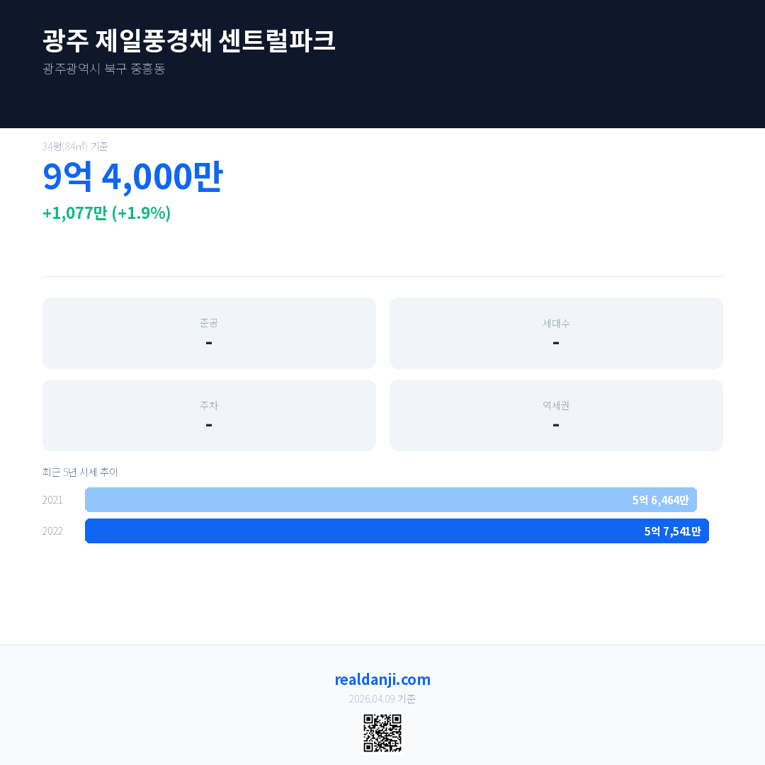 광주 제일풍경채 센트럴파크 최근 거래가는 6억 9,000만입니다. (2022-05)
