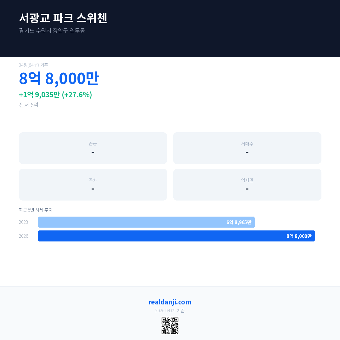 서광교 파크 스위첸 최근 거래가는 8억 8,000만입니다. (2026-03)