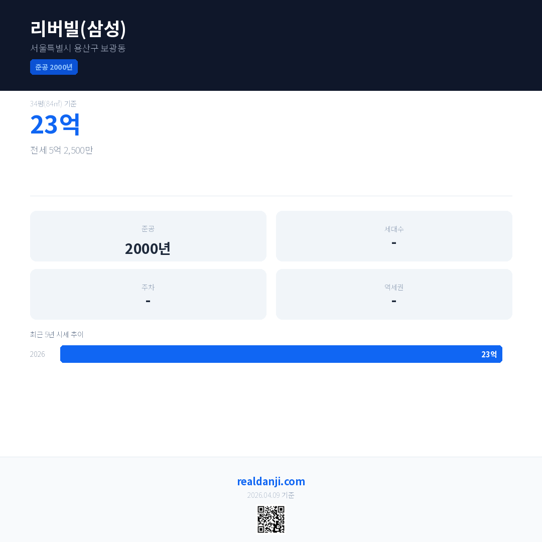 리버빌(삼성) 최근 거래가는 23억입니다. (2026-03)
