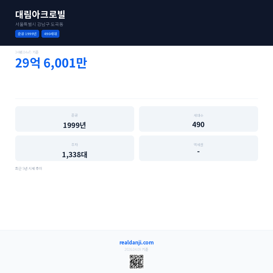 대림아크로빌 최근 거래가는 29억 6,001만입니다. (2026-03)