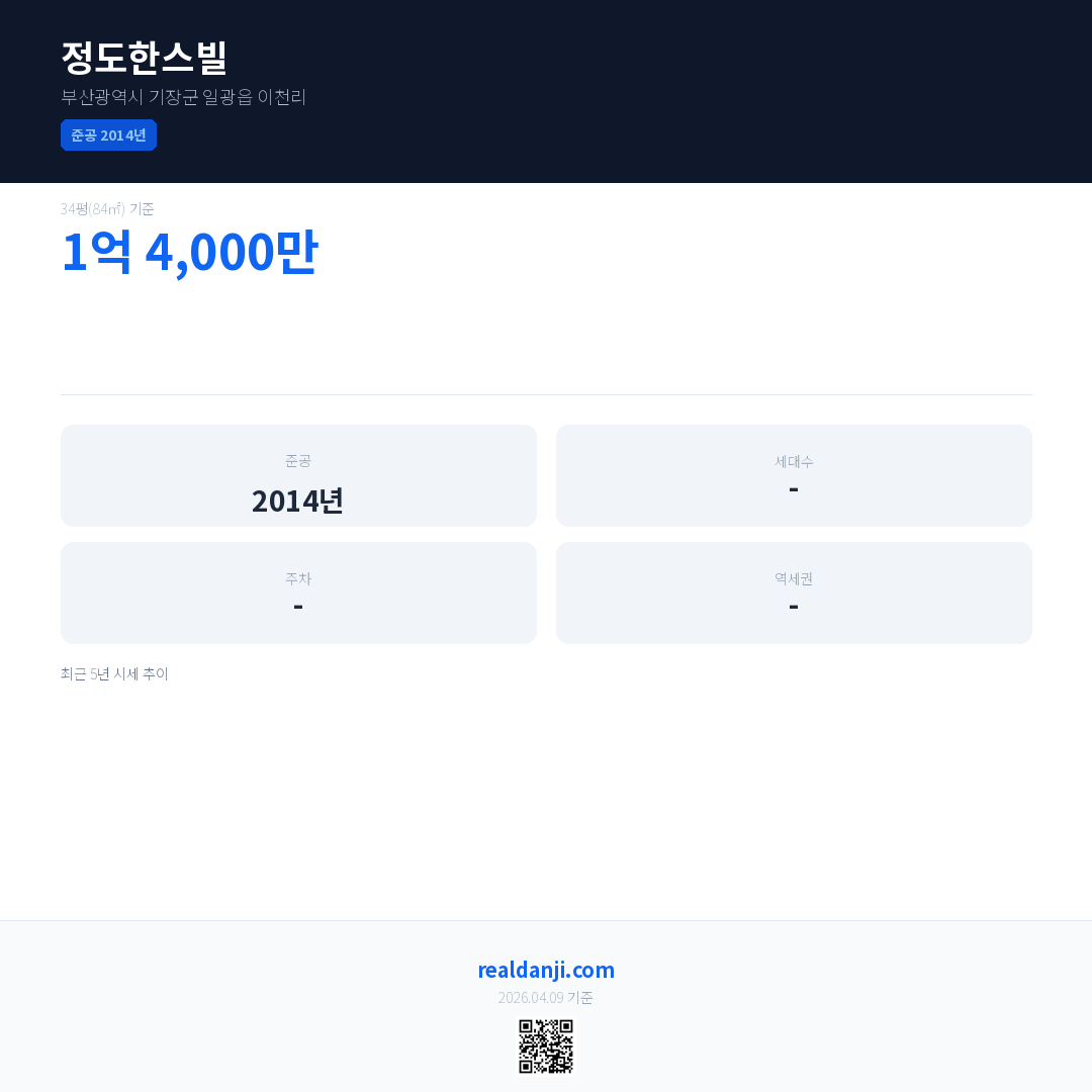 정도한스빌 최근 거래가는 1억 4,000만입니다. (2026-03)