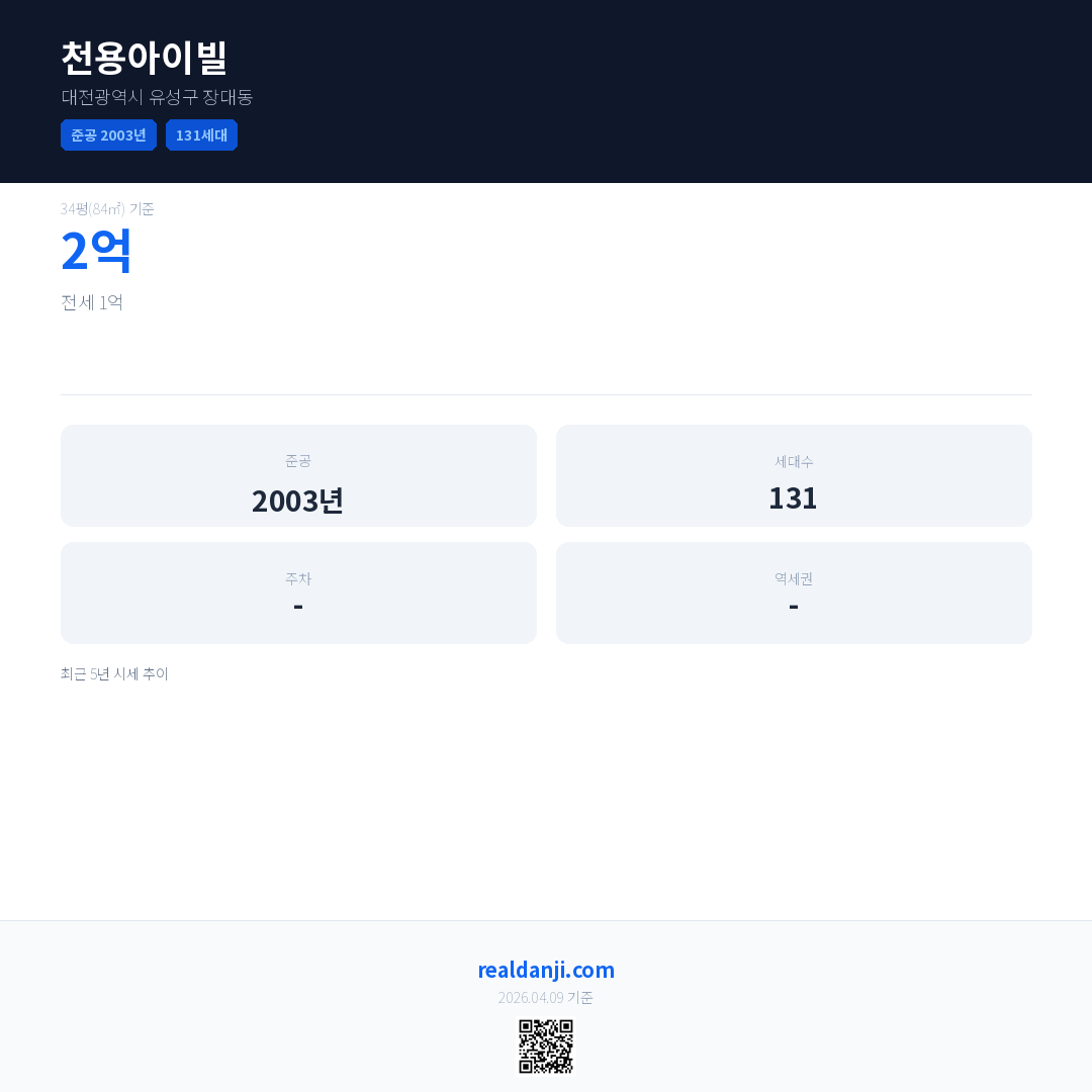 천용아이빌 최근 거래가는 2억입니다. (2026-03)