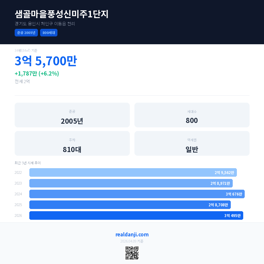 샘골마을풍성신미주1단지 최근 거래가는 3억 5,700만입니다. (2026-03)