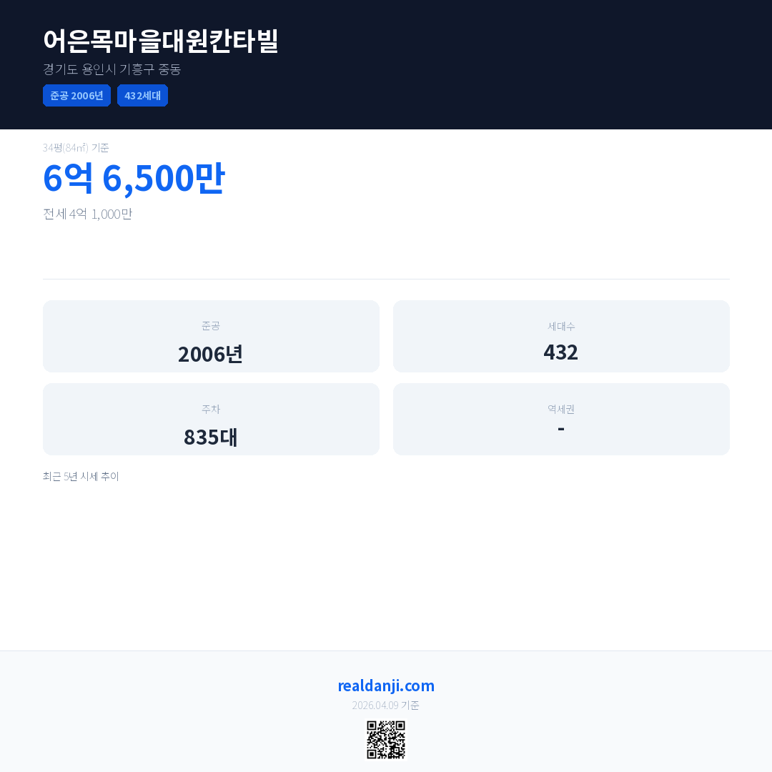 어은목마을대원칸타빌 최근 거래가는 6억 6,500만입니다. (2026-03)