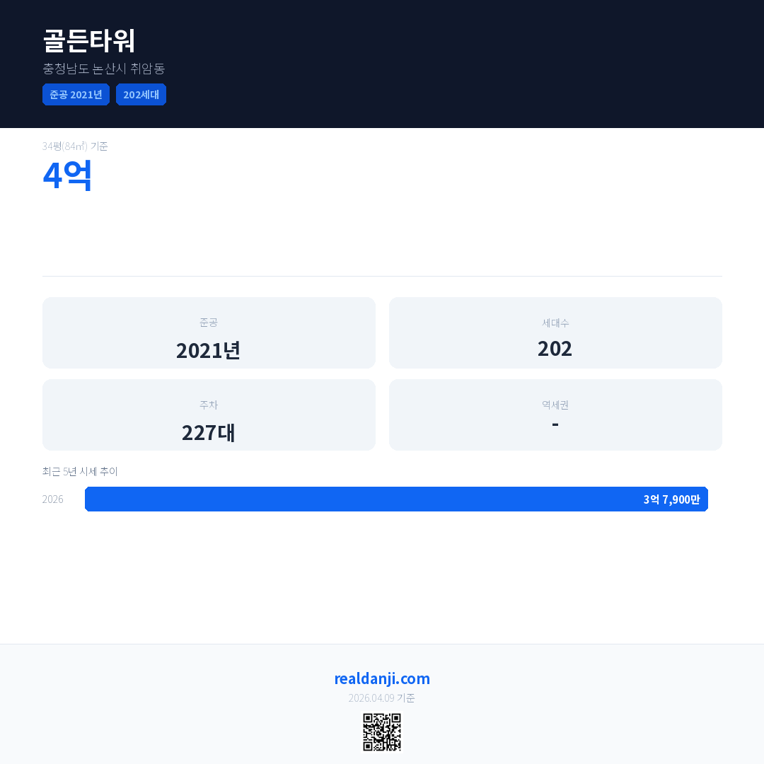 골든타워 최근 거래가는 4억입니다. (2026-03)