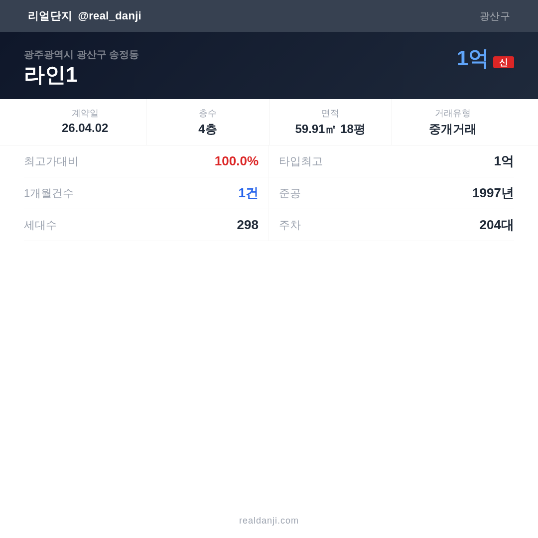라인1 최근 거래가는 1억입니다. (2026-04)