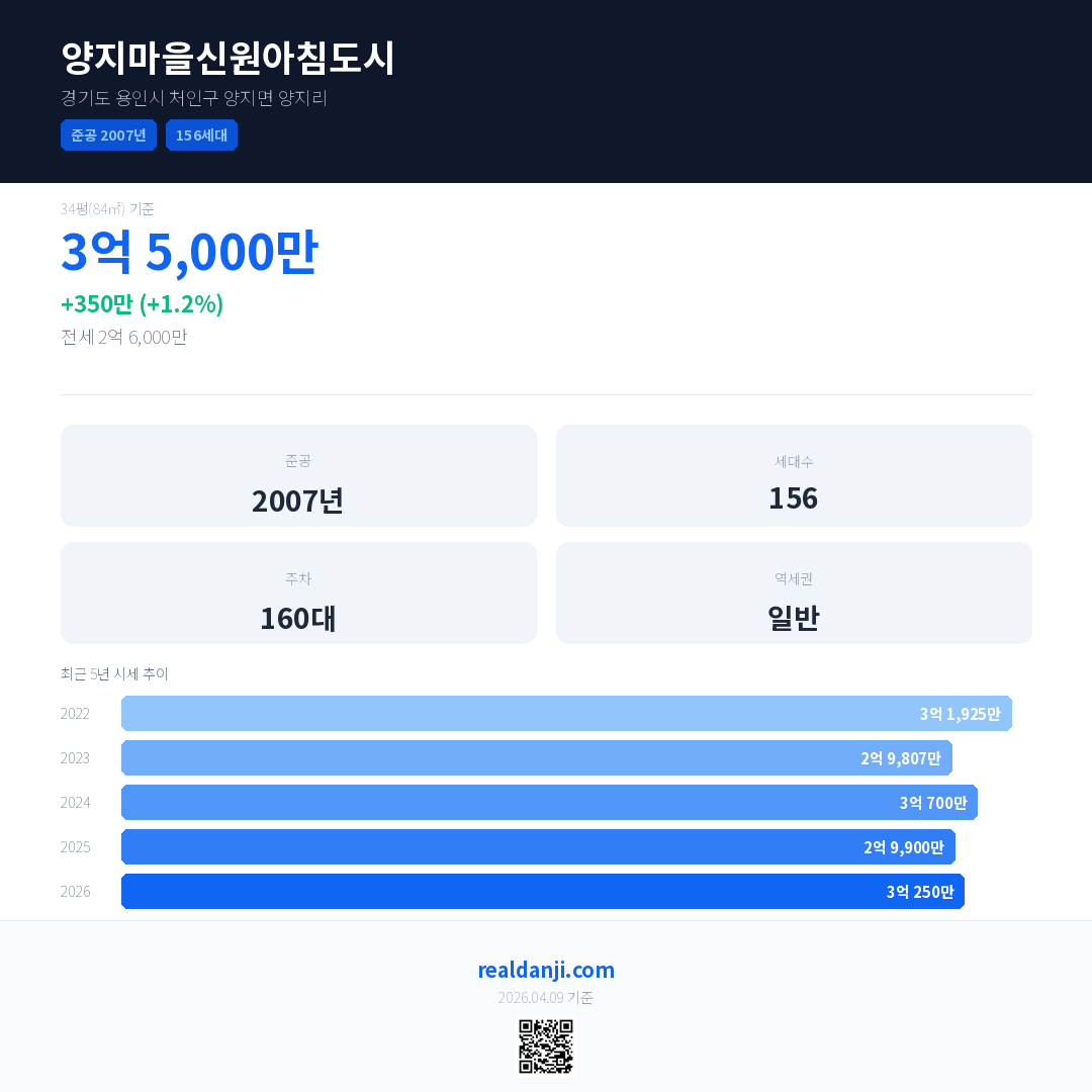 양지마을신원아침도시 최근 거래가는 3억 5,000만입니다. (2026-02)