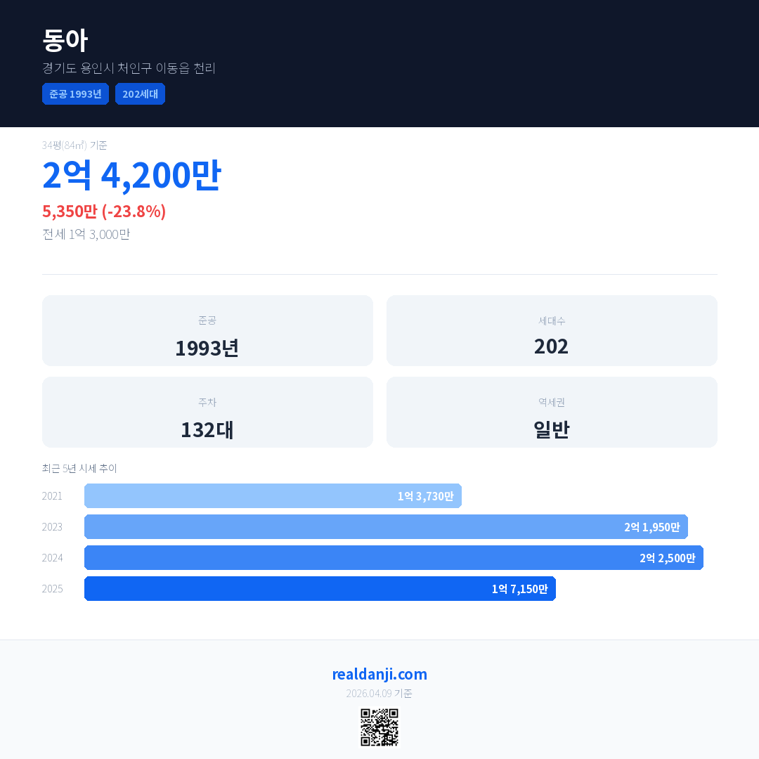 동아 최근 거래가는 2억 4,200만입니다. (2026-04)