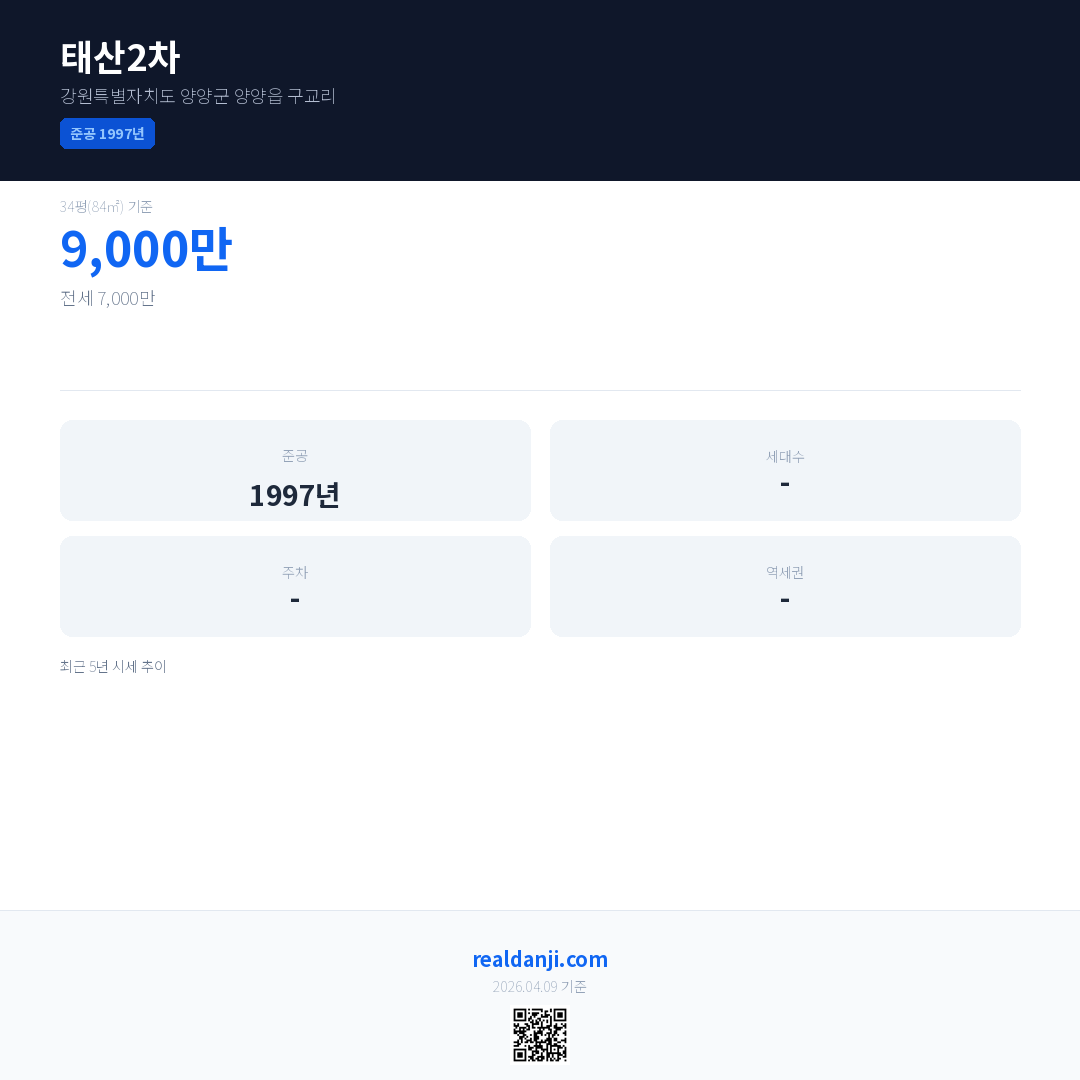 태산2차은(는) 1997년에 준공되었으며, 현재 29년차입니다.
