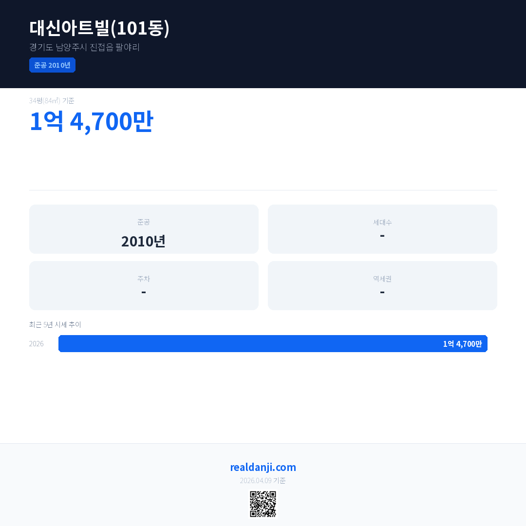 대신아트빌(101동) 최근 거래가는 1억 4,700만입니다. (2026-03-30)