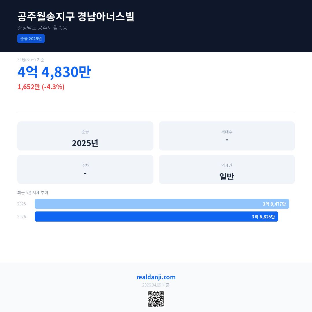 공주월송지구 경남아너스빌은(는) 2025년에 준공되었으며, 현재 1년차입니다.