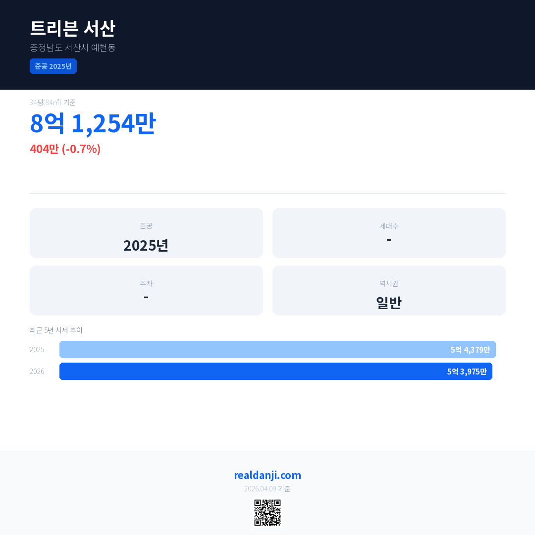 트리븐 서산은(는) 2025년에 준공되었으며, 현재 1년차입니다.