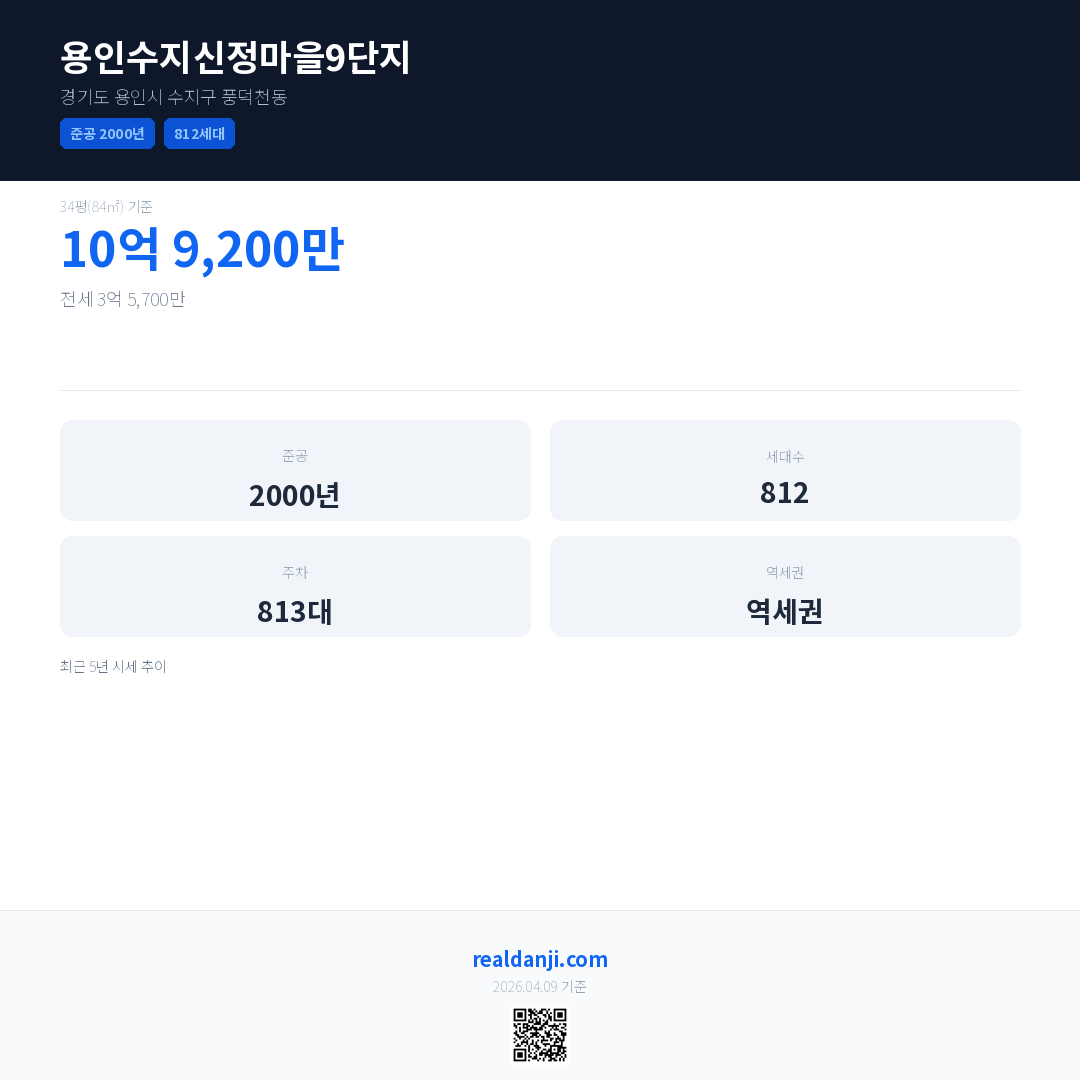 용인수지신정마을9단지 최근 거래가는 10억 9,200만입니다. (2026-03)