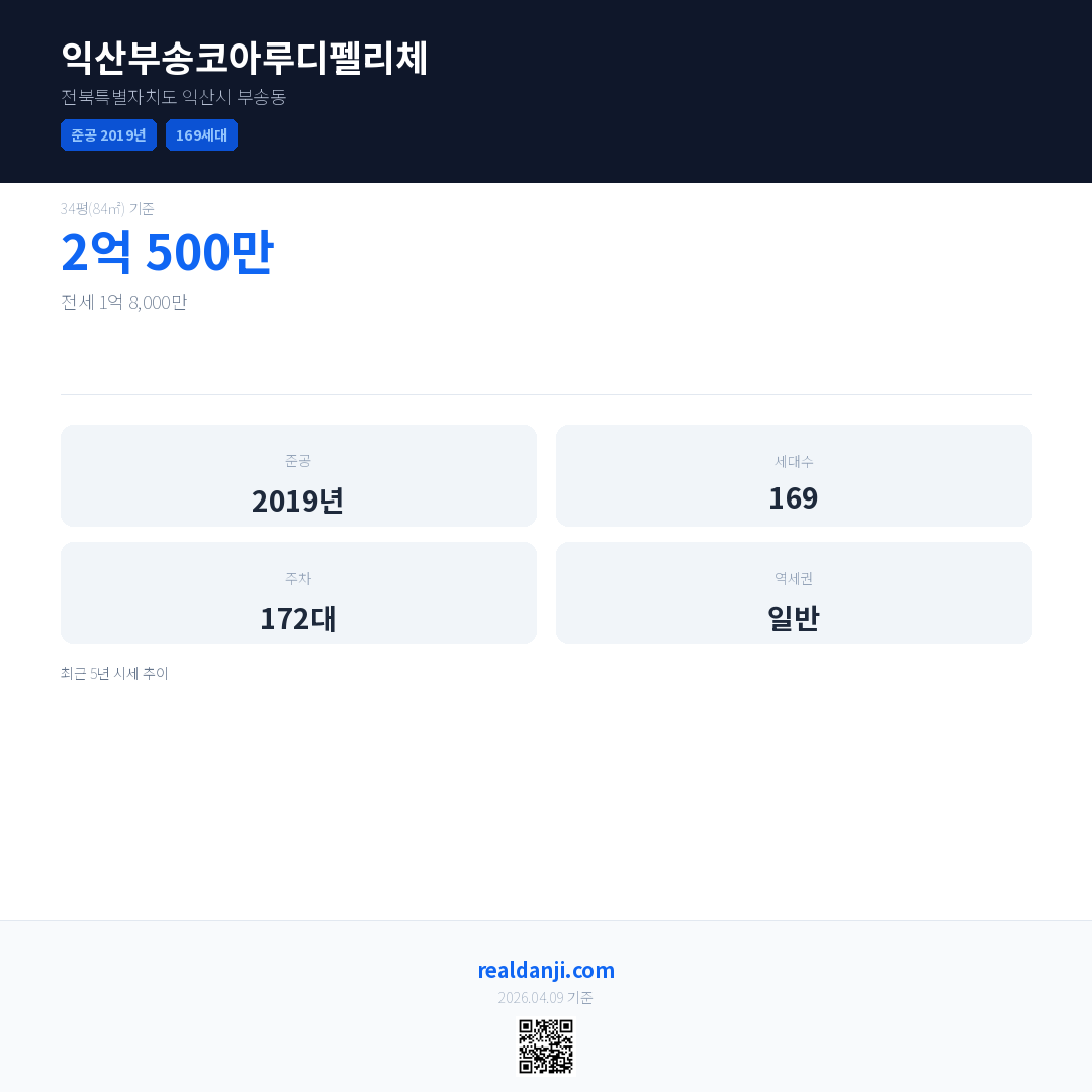 익산부송코아루디펠리체 최근 거래가는 2억 500만입니다. (2026-03)