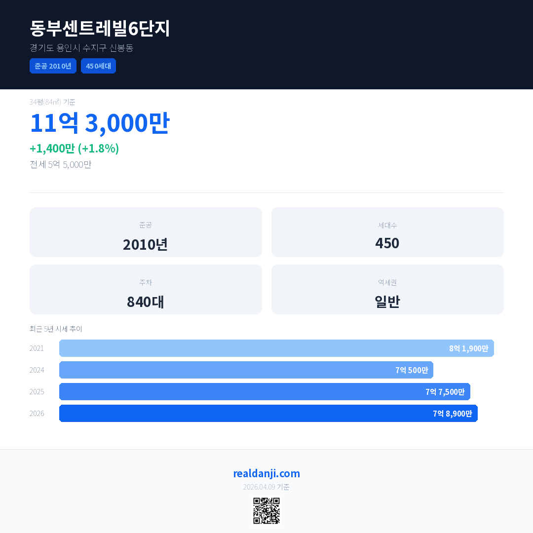 동부센트레빌6단지 최근 거래가는 11억 3,000만입니다. (2026-02)