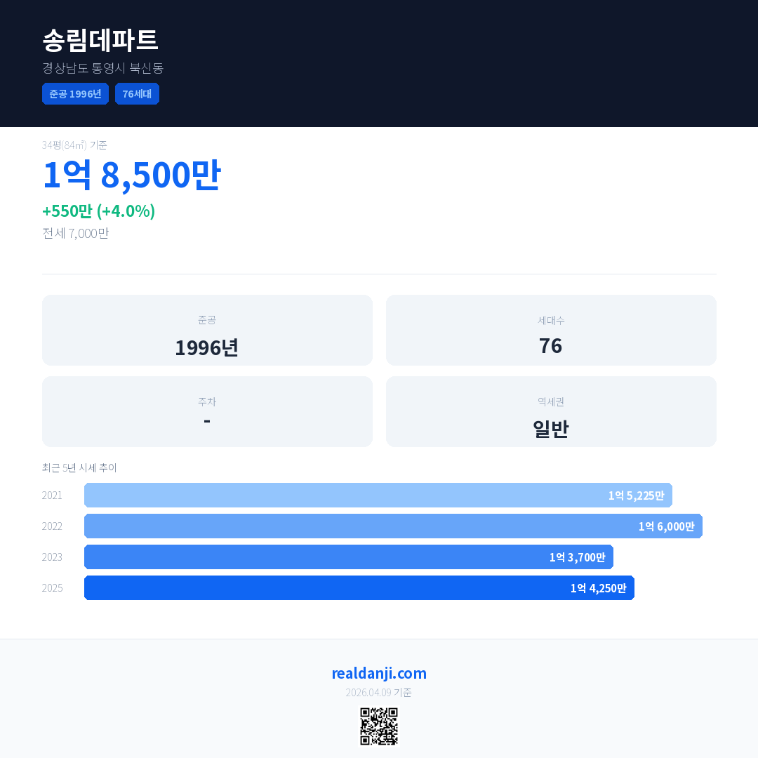 송림데파트 최근 거래가는 1억 8,500만입니다. (2025-12)