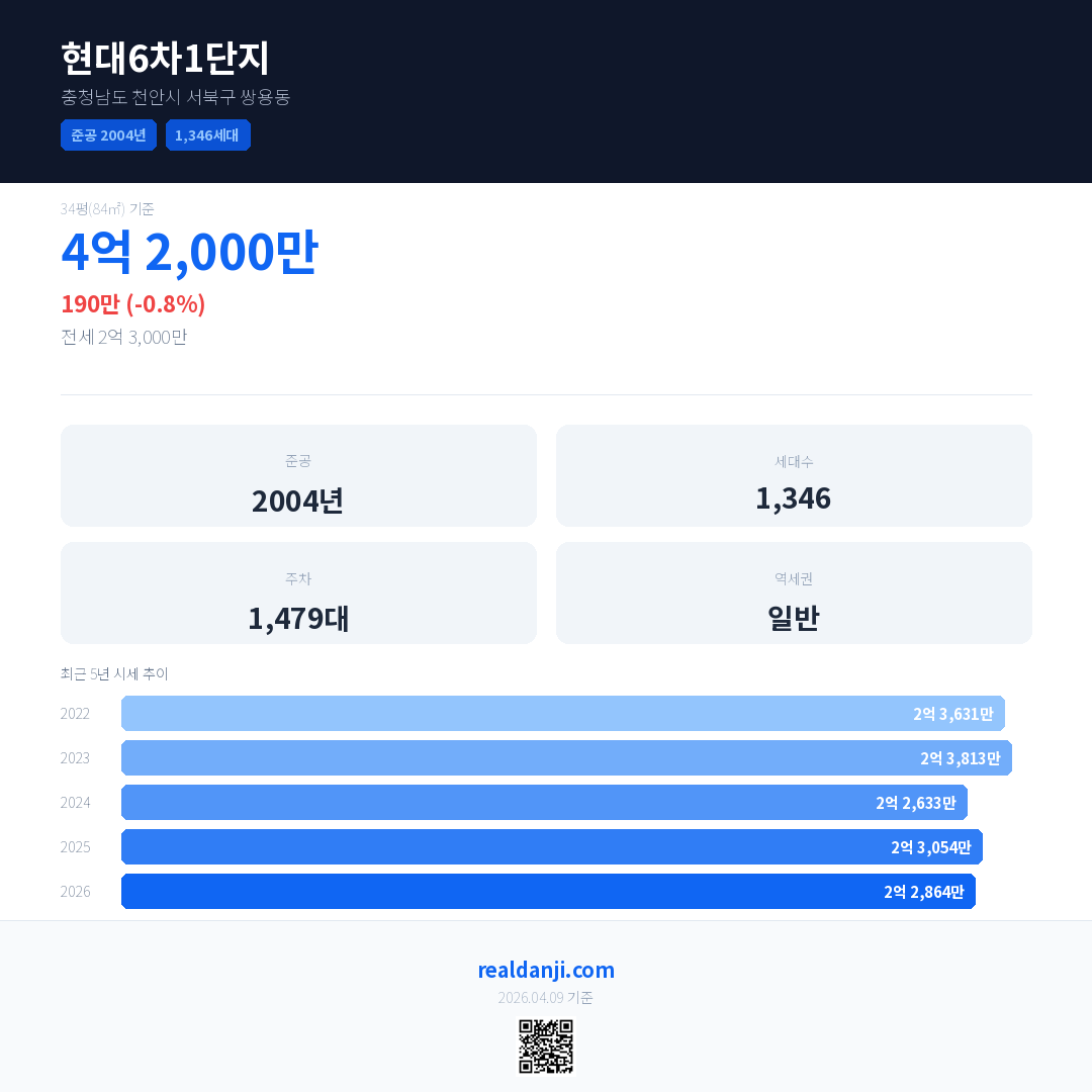 현대6차1단지 최근 거래가는 4억 2,000만입니다. (2026-04)