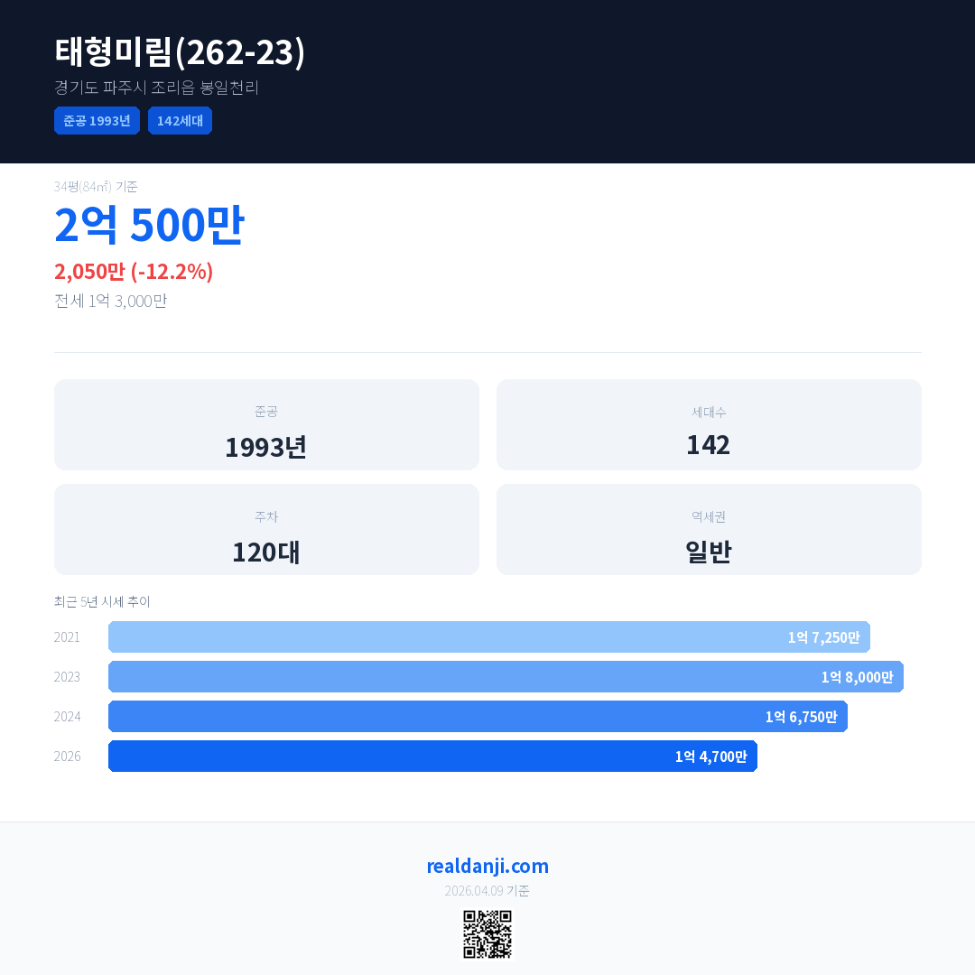 태형미림(262-23) 최근 거래가는 2억 500만입니다. (2026-03)
