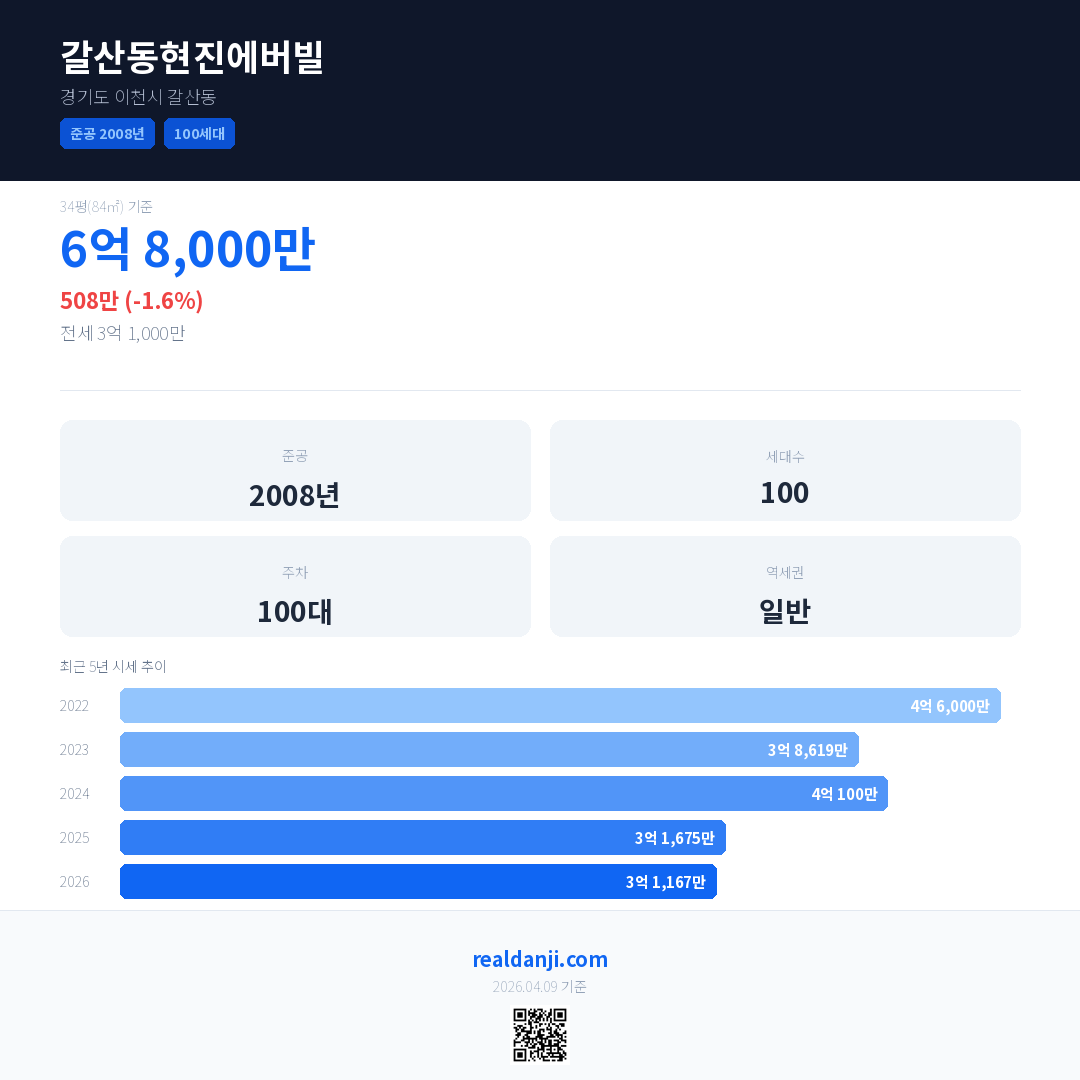갈산동현진에버빌 최근 거래가는 4억 2,000만입니다. (2026-04)