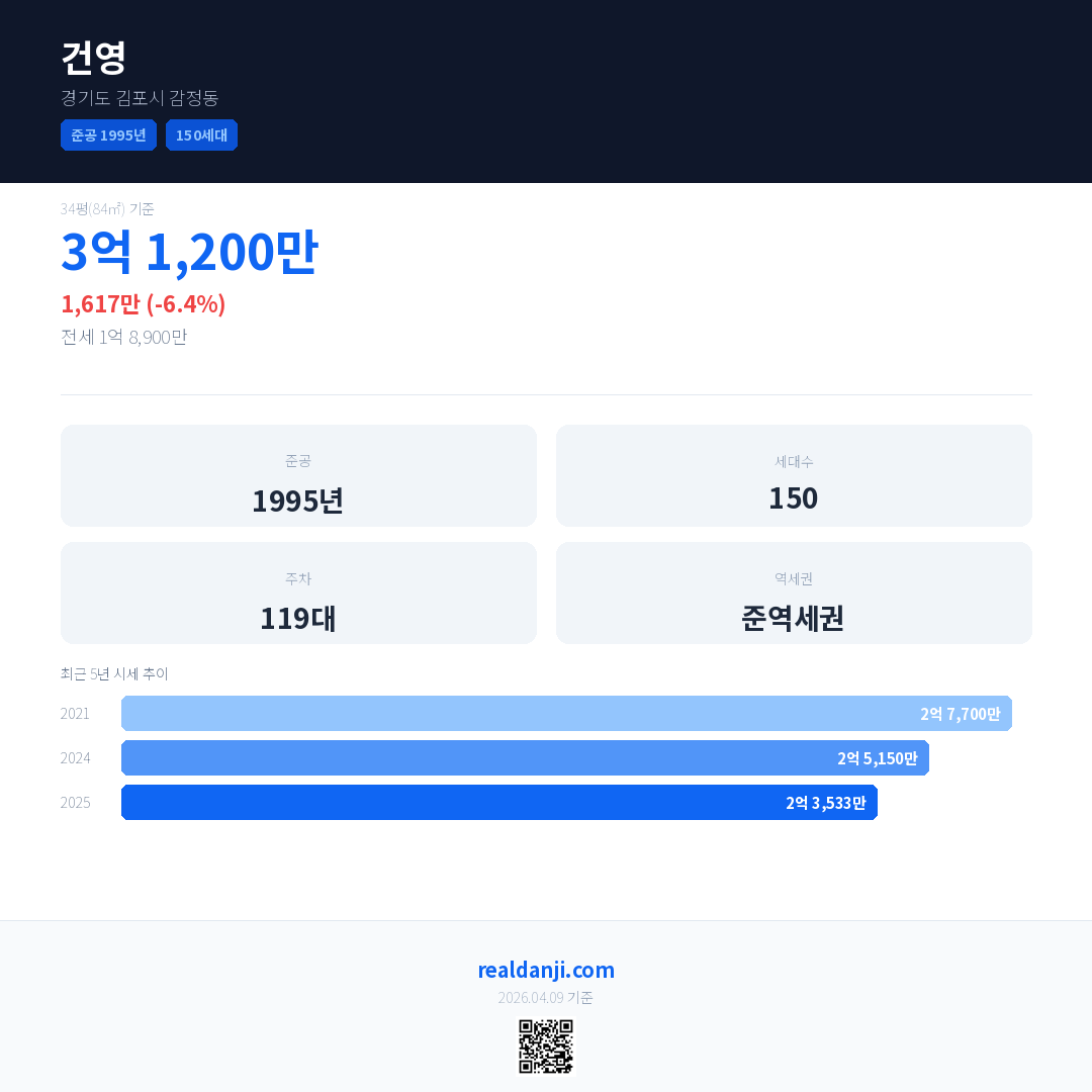 건영 최근 거래가는 3억 1,200만입니다. (2025-08)