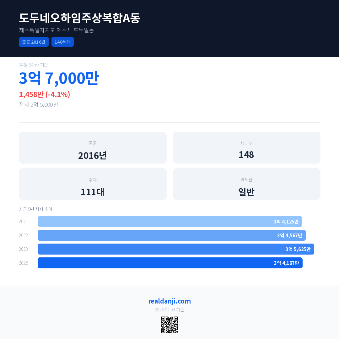 도두네오하임주상복합A동 최근 거래가는 3억 5,000만입니다. (2025-12)