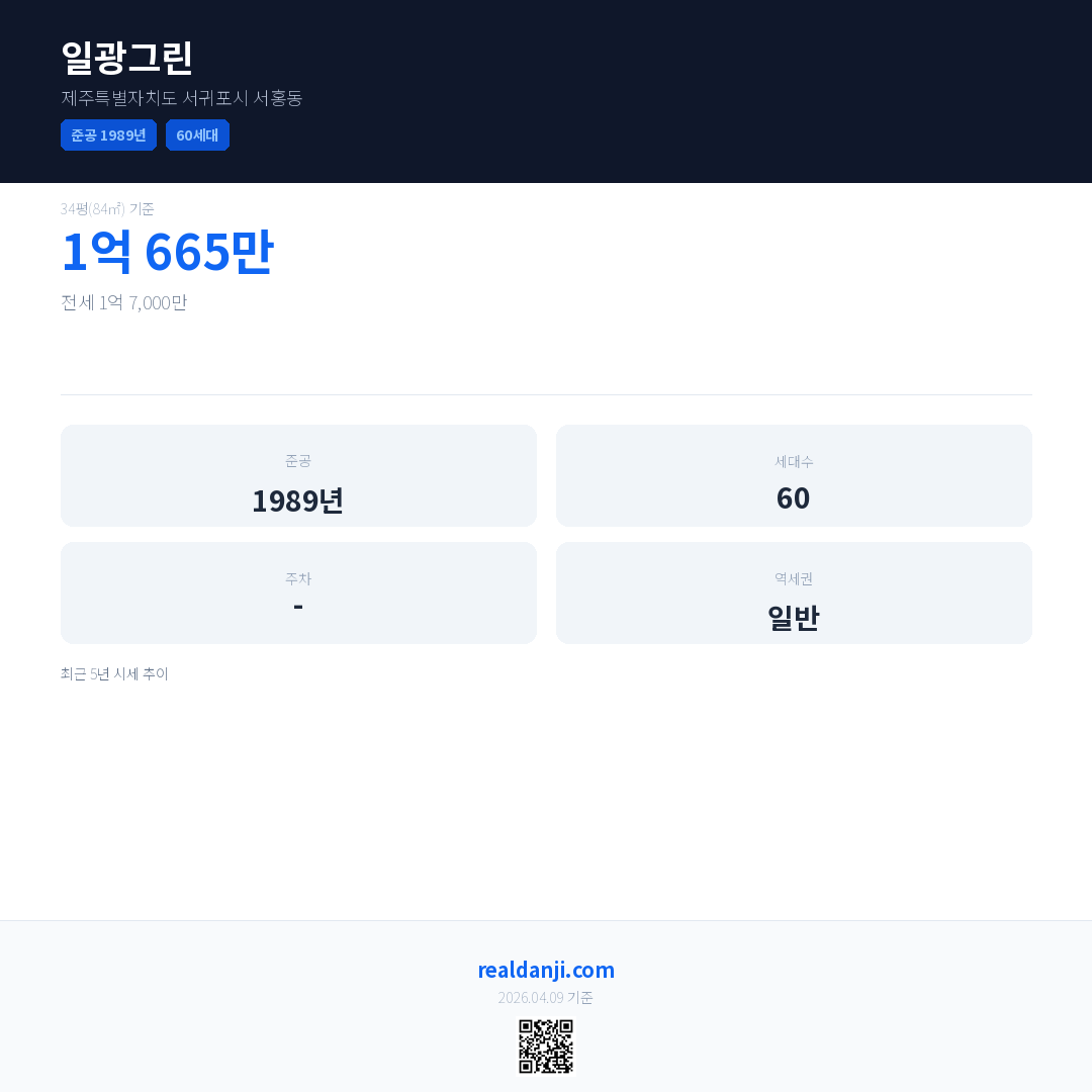 일광그린은(는) 1989년에 준공되었으며, 현재 37년차입니다. 총 60세대 규모입니다.